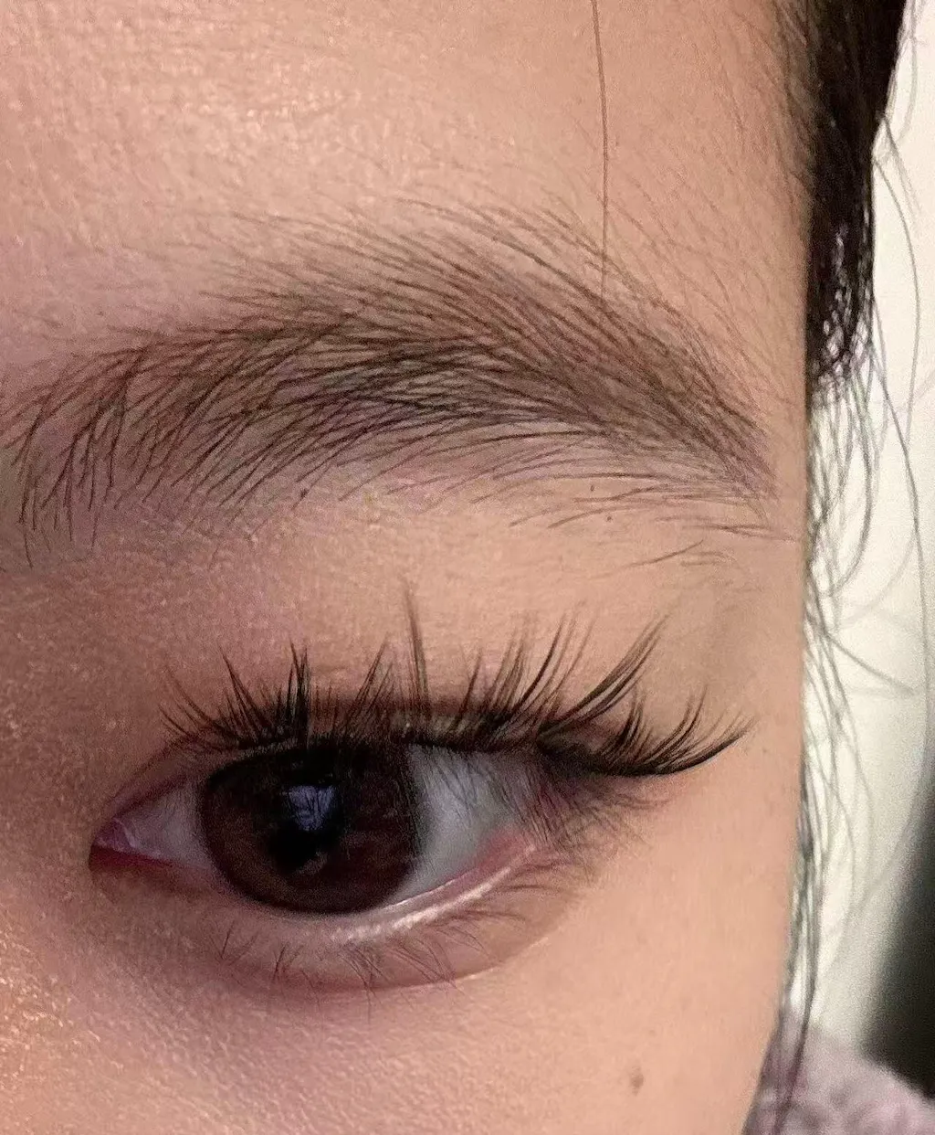 - Curl your natural lashes and apply lash setting serum.